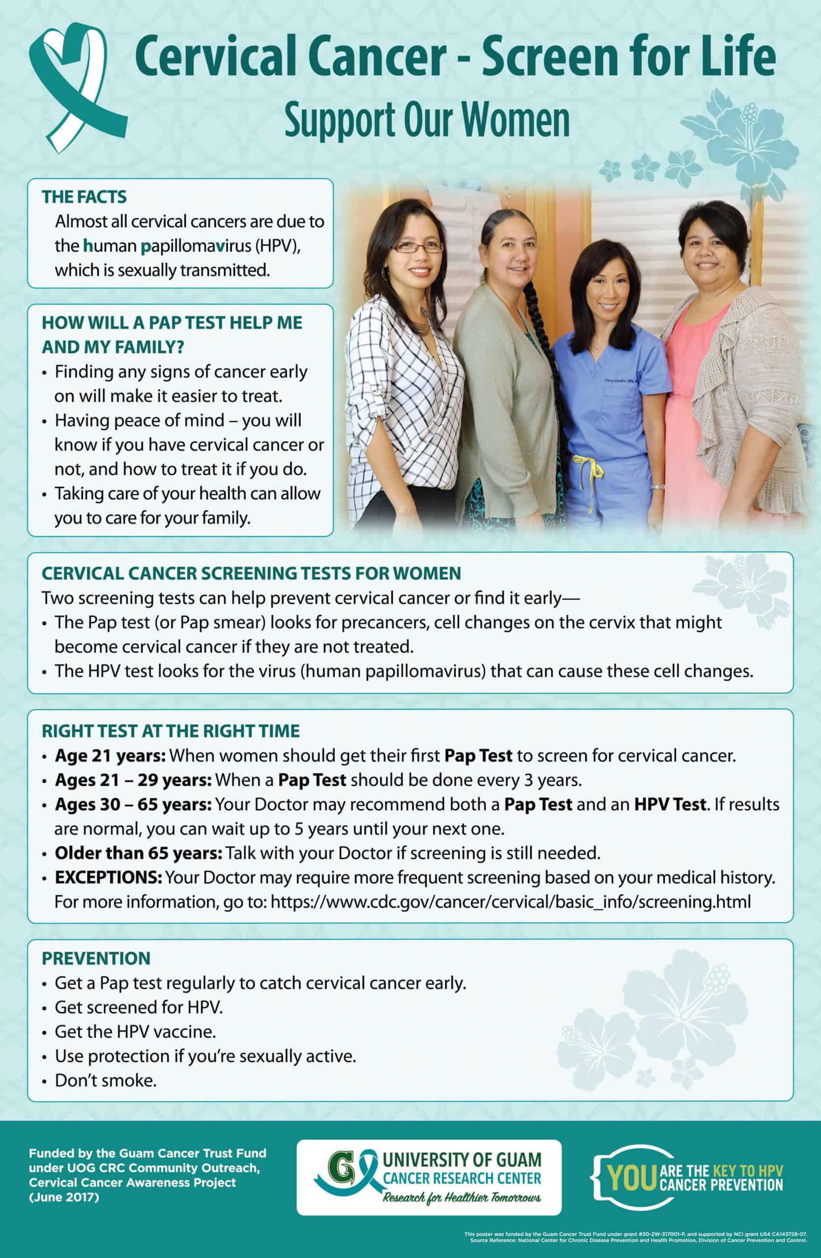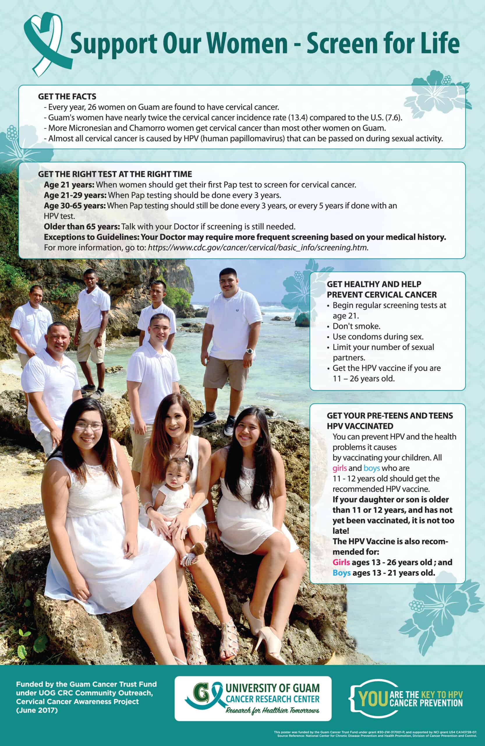 All educational materials posted below are free and available for public use exactly as they are found online; print materials may be downloaded and printed in their entirety, with no changes to the content, graphics (illustrations and photos), and logos. Graphics and logos included in COC-developed materials are not available to for use on independently-created materials. Permission to use these educational materials is not required, however, recognition of the University of Guam/University of Hawai’i Cancer Center Partnership (grant numbers U54CA143727 and U54CA143728) is appreciated. If you have questions about whether or how you may use these free resources, please call (671) 735-3036.